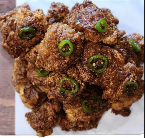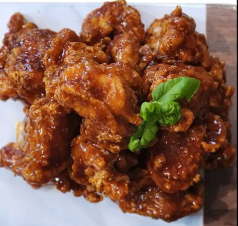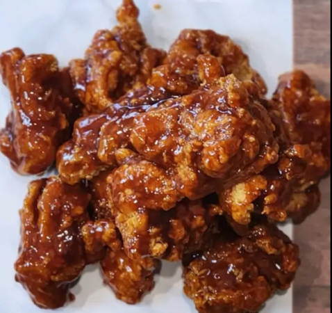 Garlic Mayo, Yangnyeom, Hot Yangnyeom, Spicy chicken with pickles and a sauce of your choice