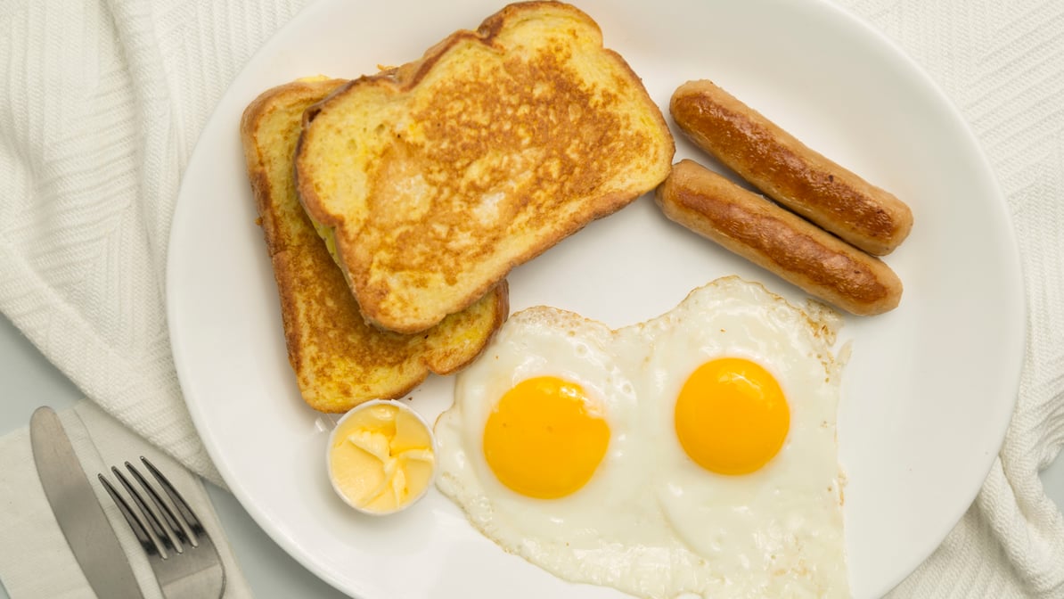 2 French Toasts, 2 Eggs, And 2 Sausages