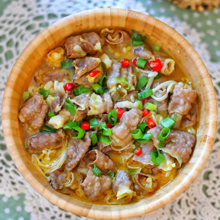 Beef With Enoki Mushroom With Vinegar And Pepper