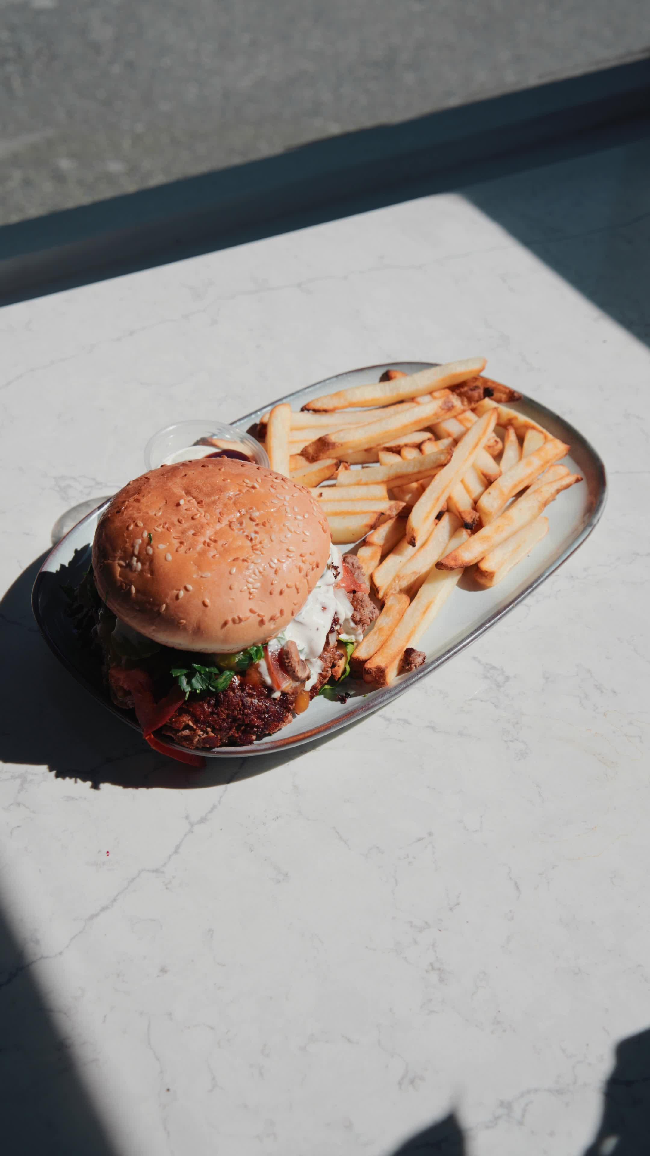 Smashed double Veal patties, Cheese, Tomato, Lettuce, Red Onion, Pickles & signature sauce in a toasted bun.