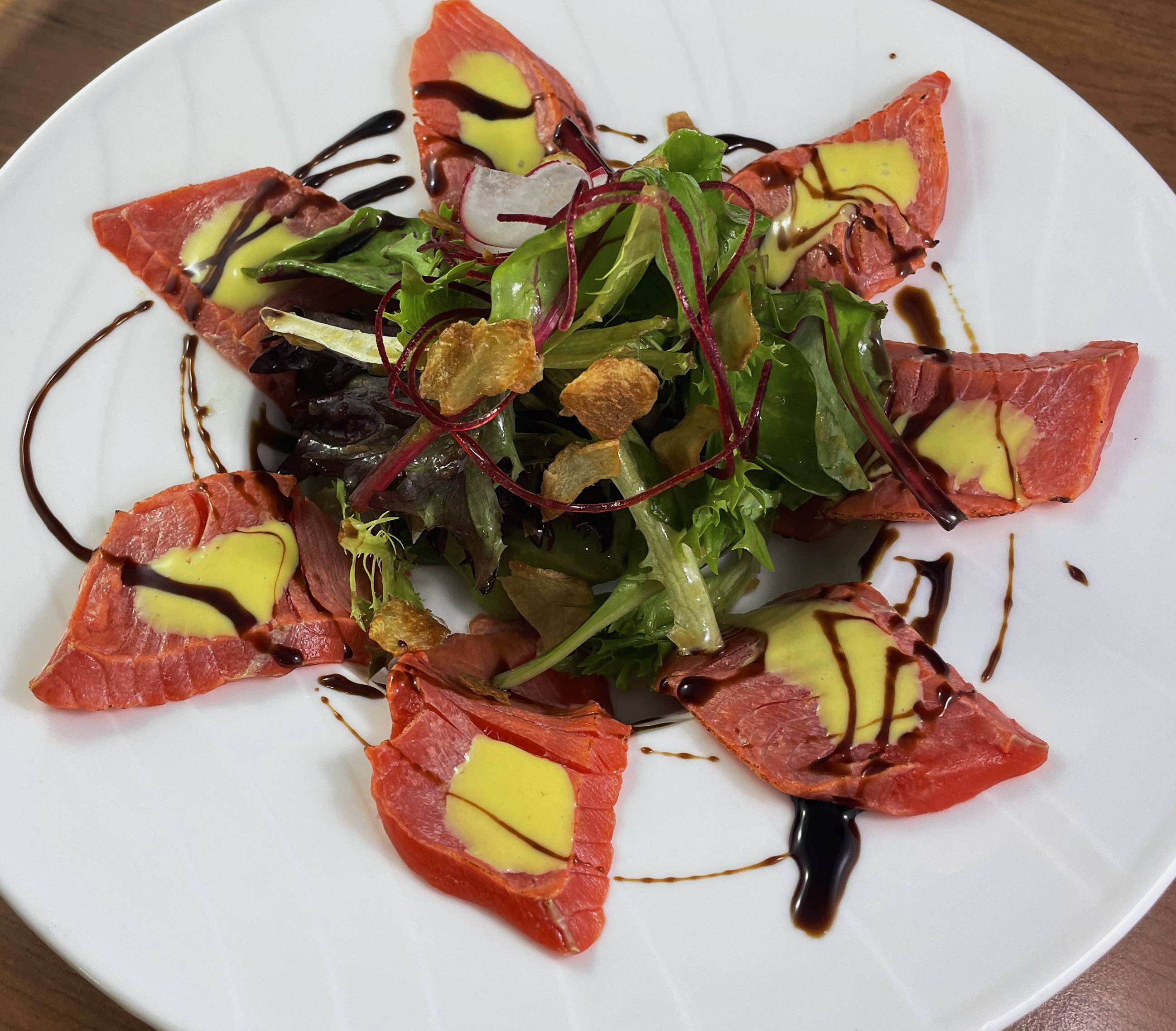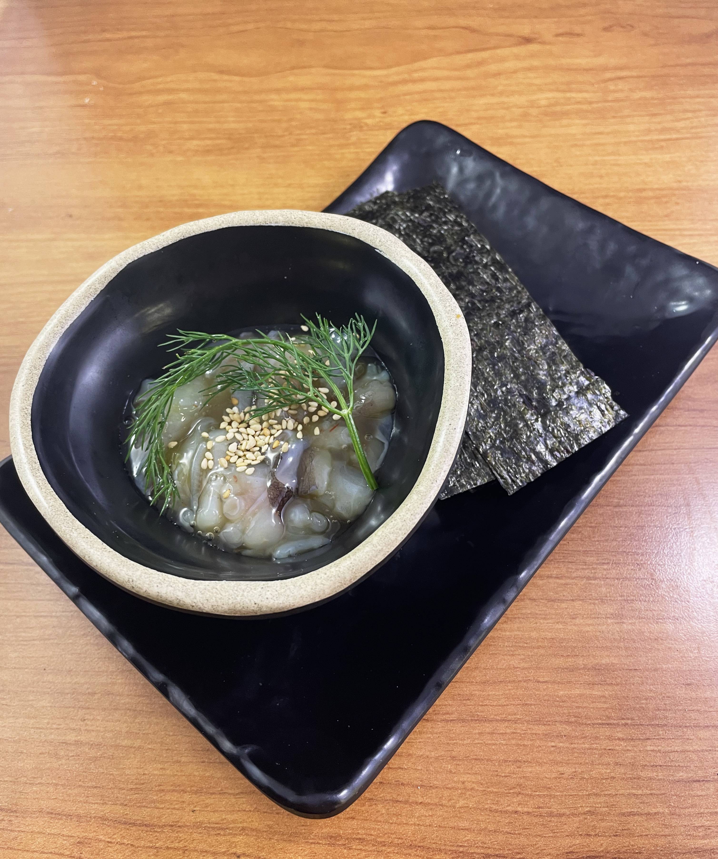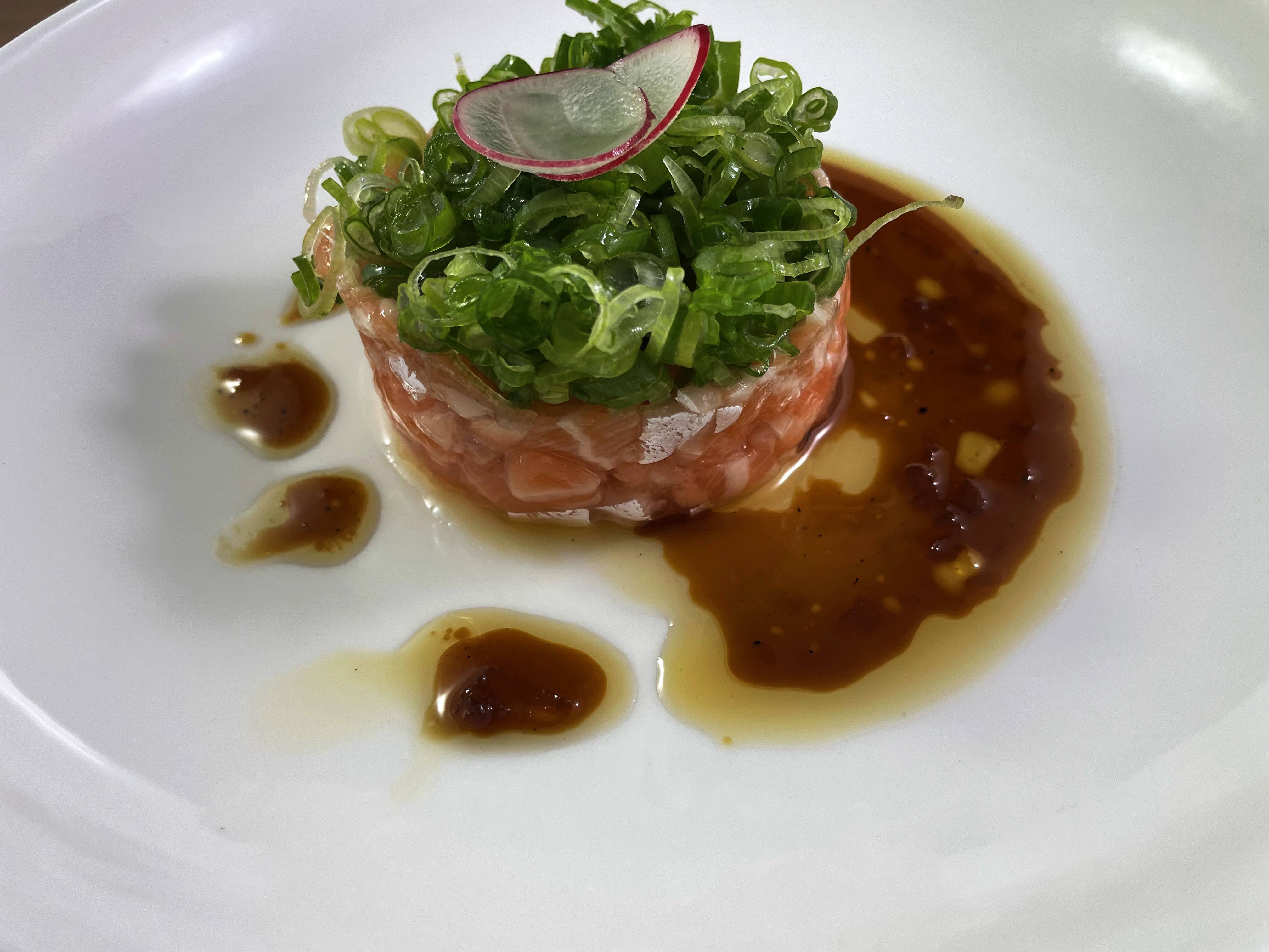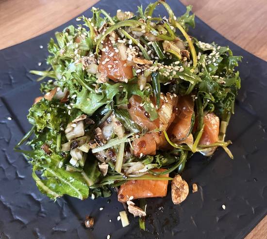 Salmon sashimi mixed in house special soy sauce (soy sauce, sesame oil, minced garlic, onion)
