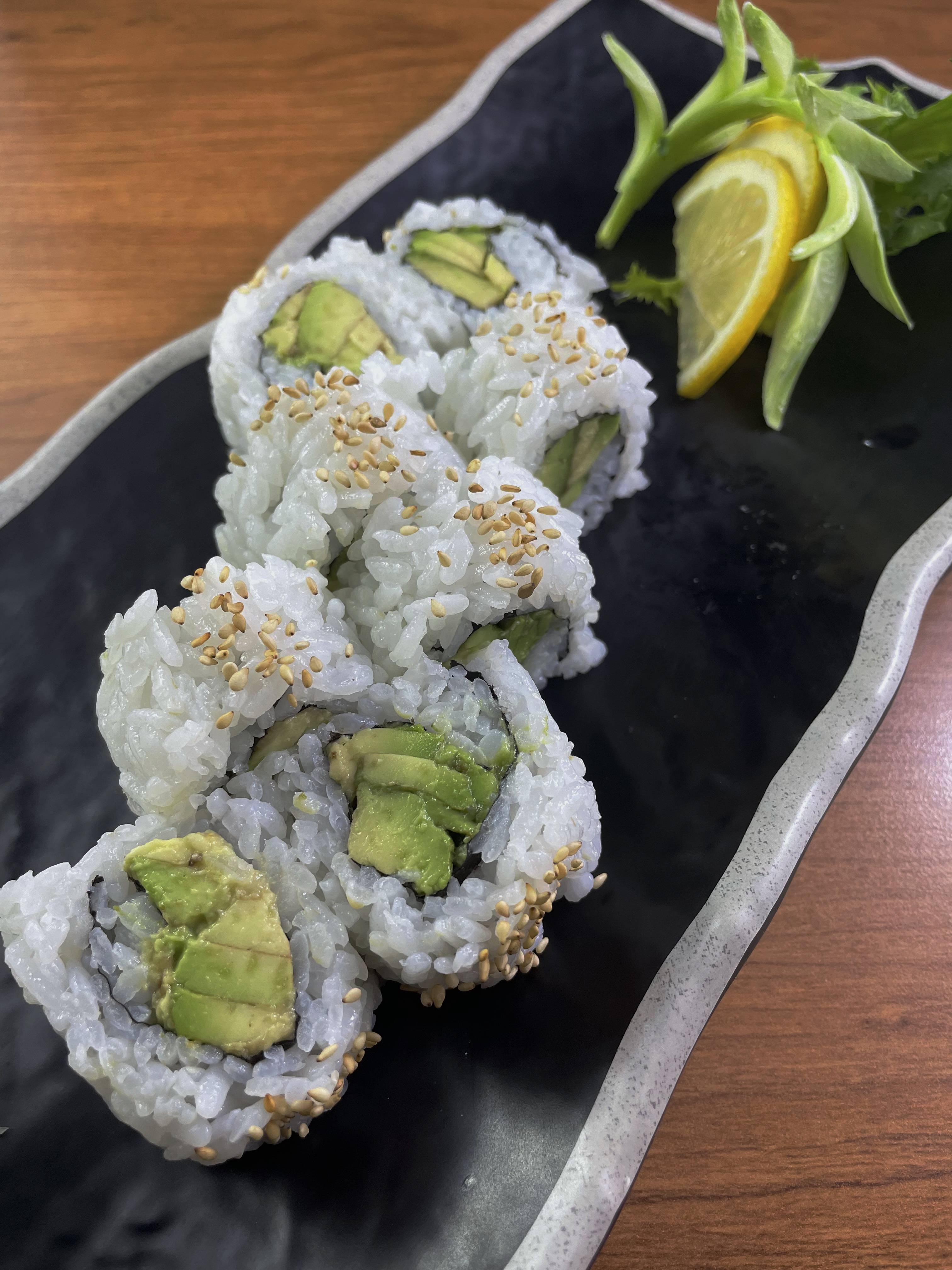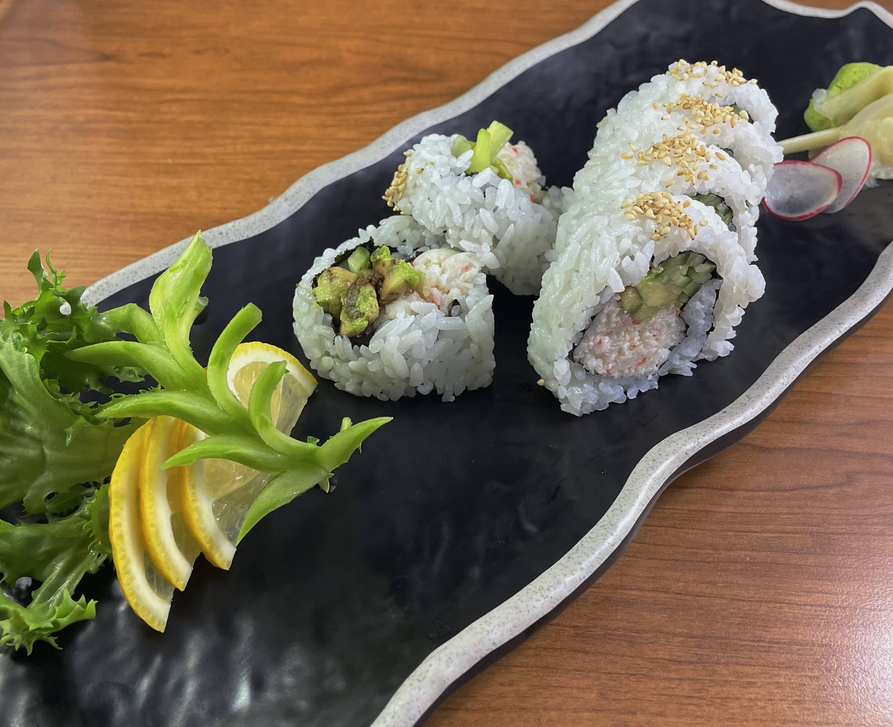 Classic roll with crab meat, cucumber, and avocado. Sprinkled with sesame seed.