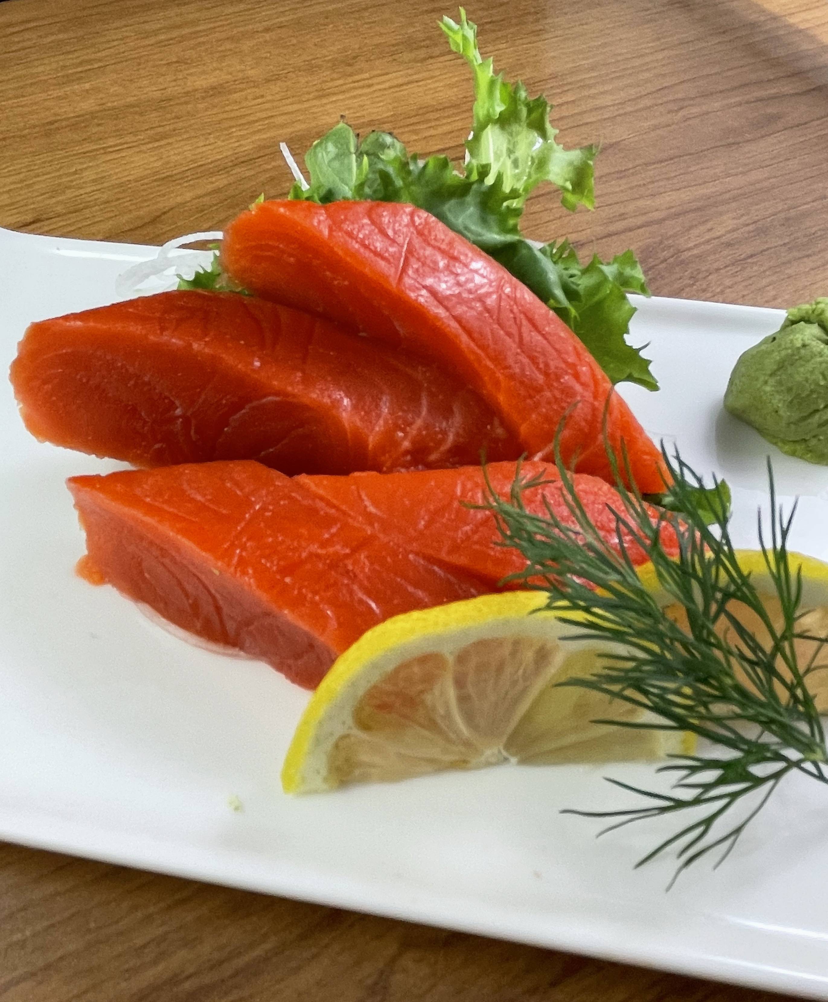 4pcs of Atlantic salmon and 4 pcs of Sockeye salmon sashimi