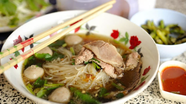 Spicy beef soup filled with your choice of noodles.