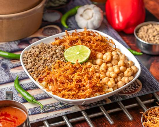 Rice With Vermicelli, Pasta, Lentil, Chickpeas, Vinaigrette Garlic Lemon, Crispy Onions, Tomato Sauce, Hot Sauce