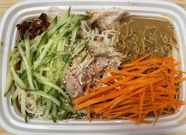 鸡丝凉面/炒面+猪肉韭菜/猪肉白菜锅贴6只