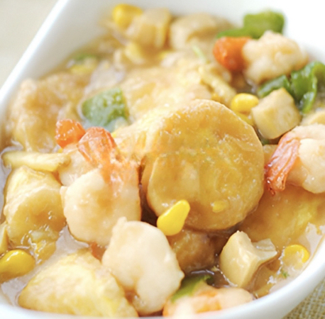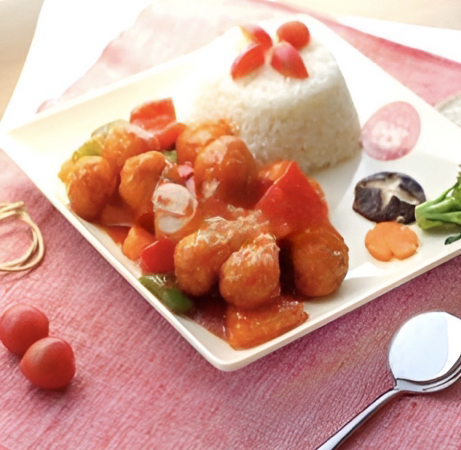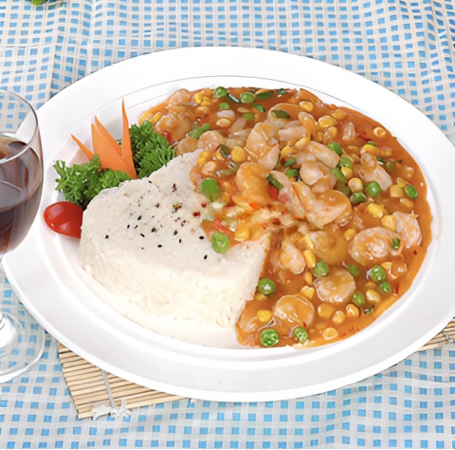 粟米雞蓉羹或酸辣湯, 雜菜雞片, 菠蘿咕噜肉, 四川蝦, 揚州炒飯, 雞絲炒麵