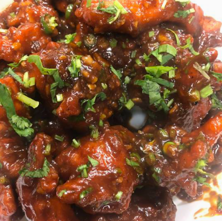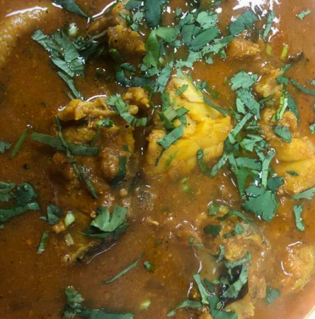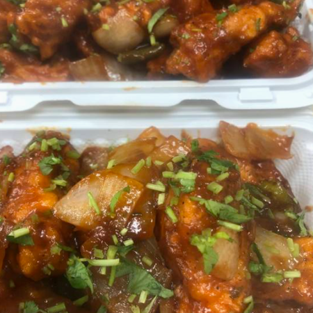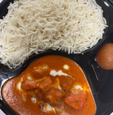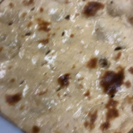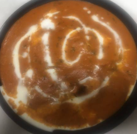 Butter chicken sauce, mushroom,onions, green pepper, chicken. and cheese.
