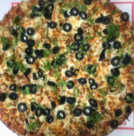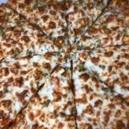 BBQ or Regular Chicken, Green Peppers, Mushrooms, Onions, Mozzarella Cheese & Pizza Sauce