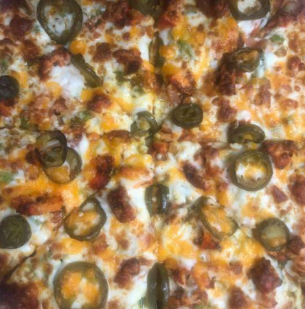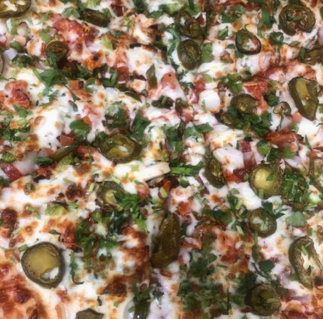 Karahi sauce onions green pepper tomatoes paneer mozzarella cheese jalapeno jalapeno cheddar cheese