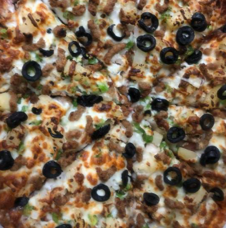 Onion, Mushroom, Mozzarella Cheese, Olives, Pineapple, Banana Pepper, Green Pepper