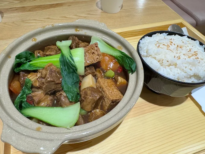 braised beef brisket rice 黄焖牛腩饭 with 1 rice 含1碗米饭 可备注辣度
