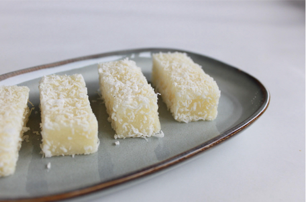 Tapioca flour, rice flour, sugar, and coconut milk.