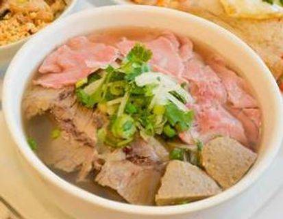Tender beef and beef balls served in a rich noodle soup.
