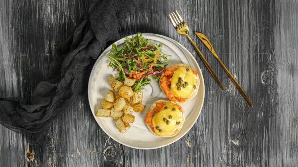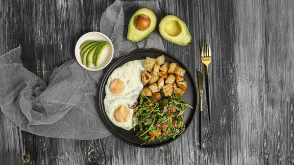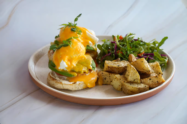 Two Eggs Any Style, Choice of Mushrooms, Tomatoes,Avocado,Bacon Orchorizo Served With Roasted Potatoes +Salad, +1.00 For Chorizo, Add Toast or Corn Tortillas +1.50