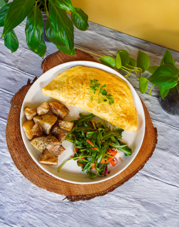 Scrambled Eggs, Cheddar, Black Beans, Pico De Gallo + Avocádo Whole Wheat Tortlla Served With Roasted Potatoes + Salad, Add Chorizo +4.5