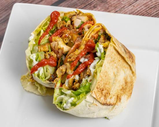 Lettuce, onions, tomatoes, cucumbers, tzatziki, garlic hot sauces.