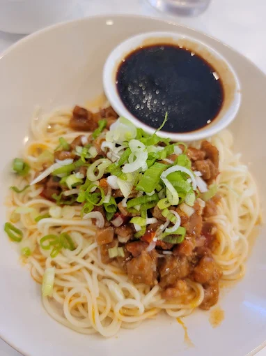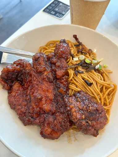 Dry Noodle Mixed With Deep Fried Scallion Oil + Pork Chop Braised With Soy Sauce