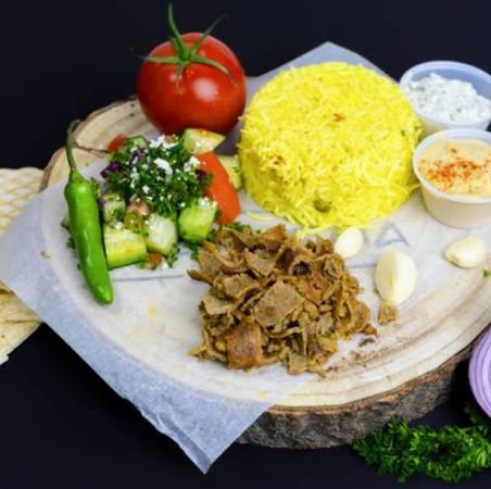 Includes all Sauces, vegetables and Donair Beef Grilled Wrap