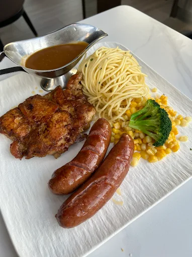 Luncheon Meat and Egg Butter Pineapple Bun with French Fries