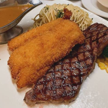 以上套餐可配: 薯茸,炸薯條,白飯,意大利粉 或者雜菜+$3, 是日餐湯, 熟飲品 (凍飲品加$2.00)。自選腾汁(燒汁、黑椒汁、蒜蓉汁、蘑菇汁、洋葱汁)
