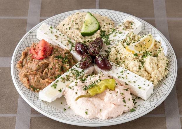 Combination of Artichoke(V), Hummus(V), Taramosalata, Melitzanosalata(V), with Olives Feta(V) & Pita. Great for sharing. Great for sharing.