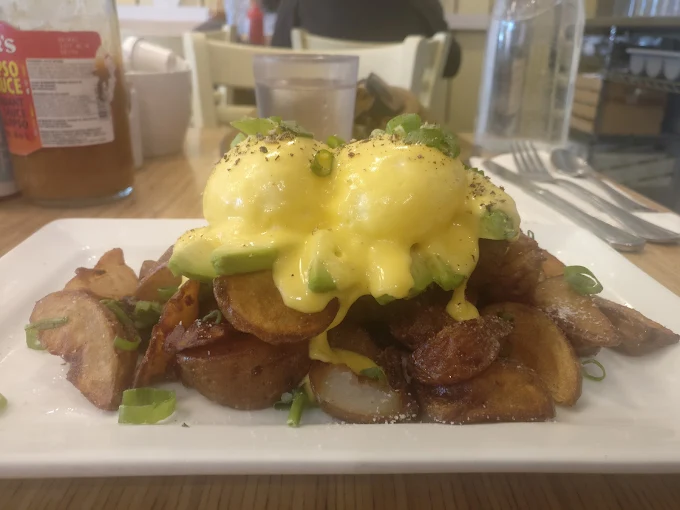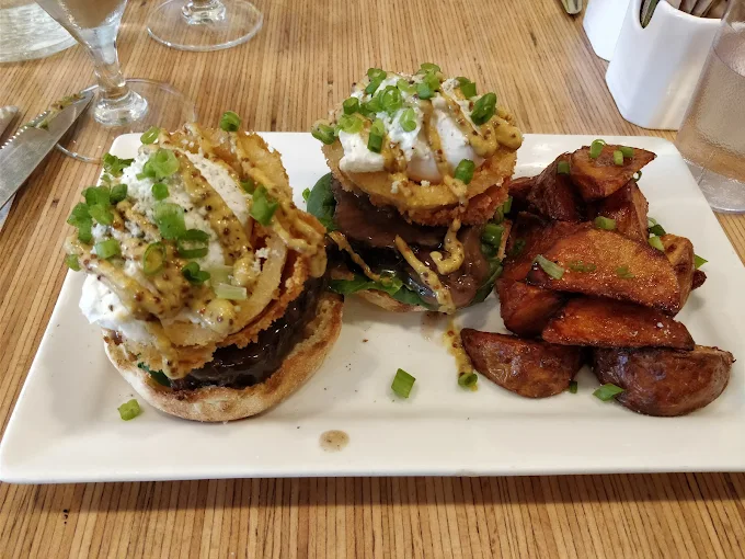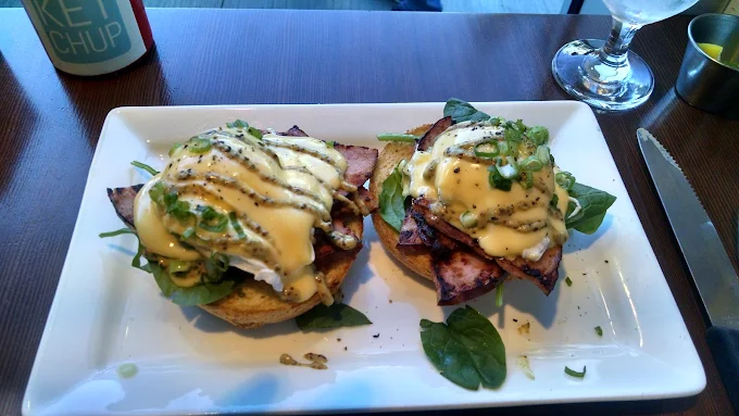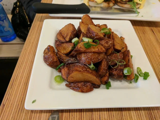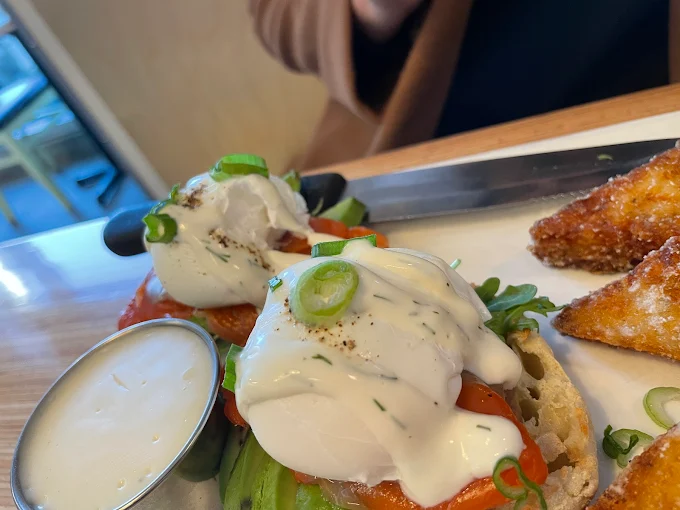 Yolks - Broadway, situated at 546 West Broadway in Vancouver, is a premier culinary destination celebrated for its sophisticated and dedicated approach to transforming breakfast classics into "breakfast but better." The establishment offers a bright, high-energy, and modern "fine diner" atmosphere that captures a trendy urban spirit, making it an ideal choice for a lively social brunch or a refined professional morning meeting. Their extensive menu is anchored by signature heritage dishes, including their trademark "Perfectly Poached™" eggs served with real house-made hollandaise and the highly acclaimed Truffle Lemon Potatoes. Guests also highly recommend their unique specialties such as the Buttermilk Fried Chicken & Waffles Benedict, the Ancho Pork Belly Benedict, and decadent Double Blueberry Pancakes with real vanilla whipped cream. Renowned for its commitment to using high-quality ingredients—such as free-range eggs and house-cured wild BC salmon—and providing exceptionally friendly, hospitable service, the establishment provides a satisfying and culturally rich dining experience. With its focus on meticulous artisanal preparation and a dynamic beverage program featuring fresh-squeezed orange juice and Nutella lattes, Yolks - Broadway serves as a top-tier neighborhood hub for authentic and elevated comfort food.