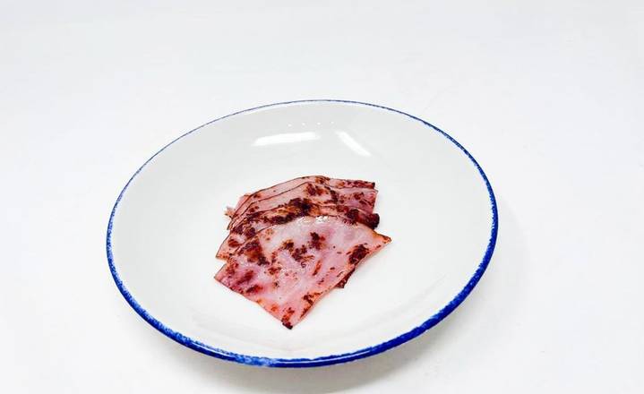 Grilled Quebec smokehouse maple ham with Yolks-made Difon, pickled Spanish onions,and fresh spinach